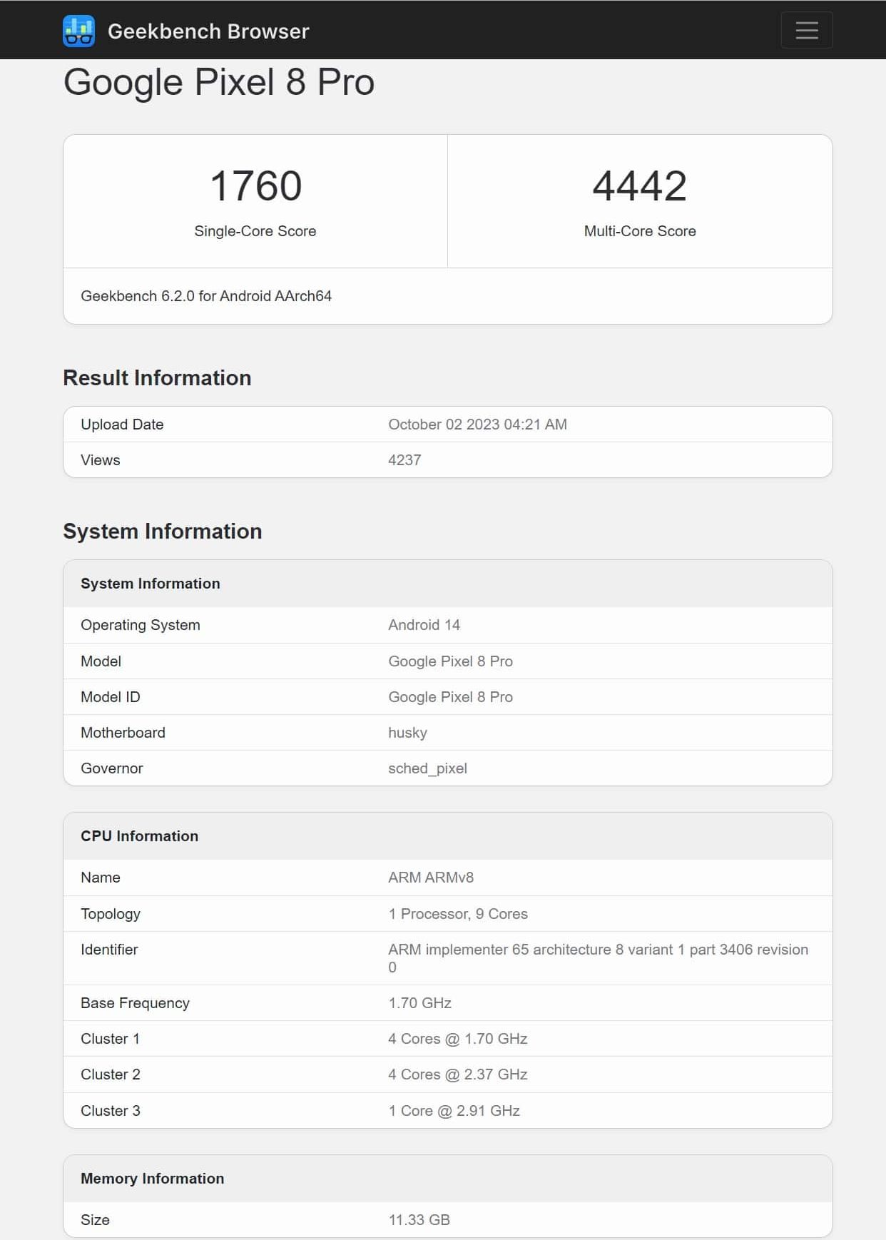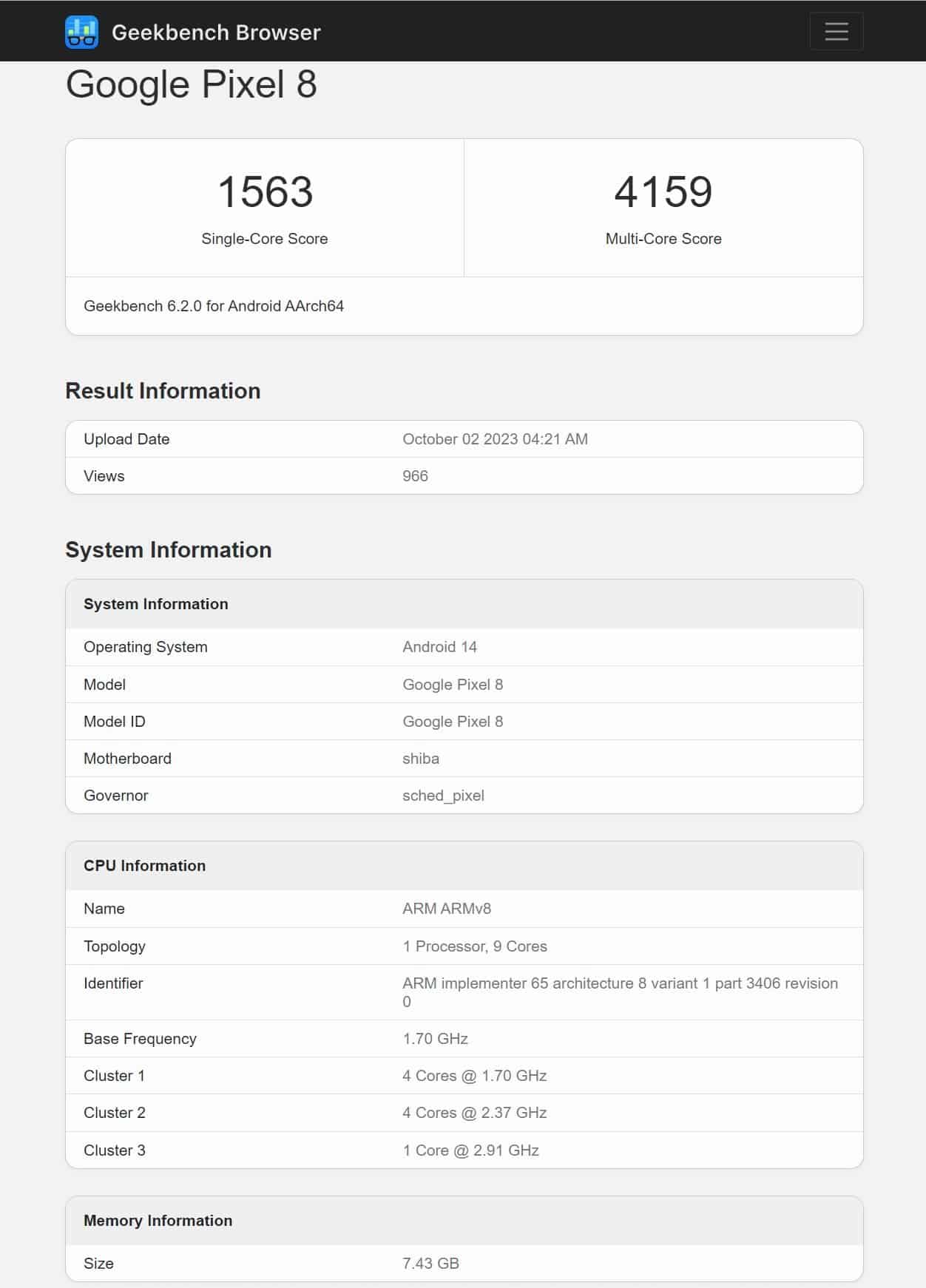 Pixel 8 and Pixel 8 Pro – Geekbench Listing